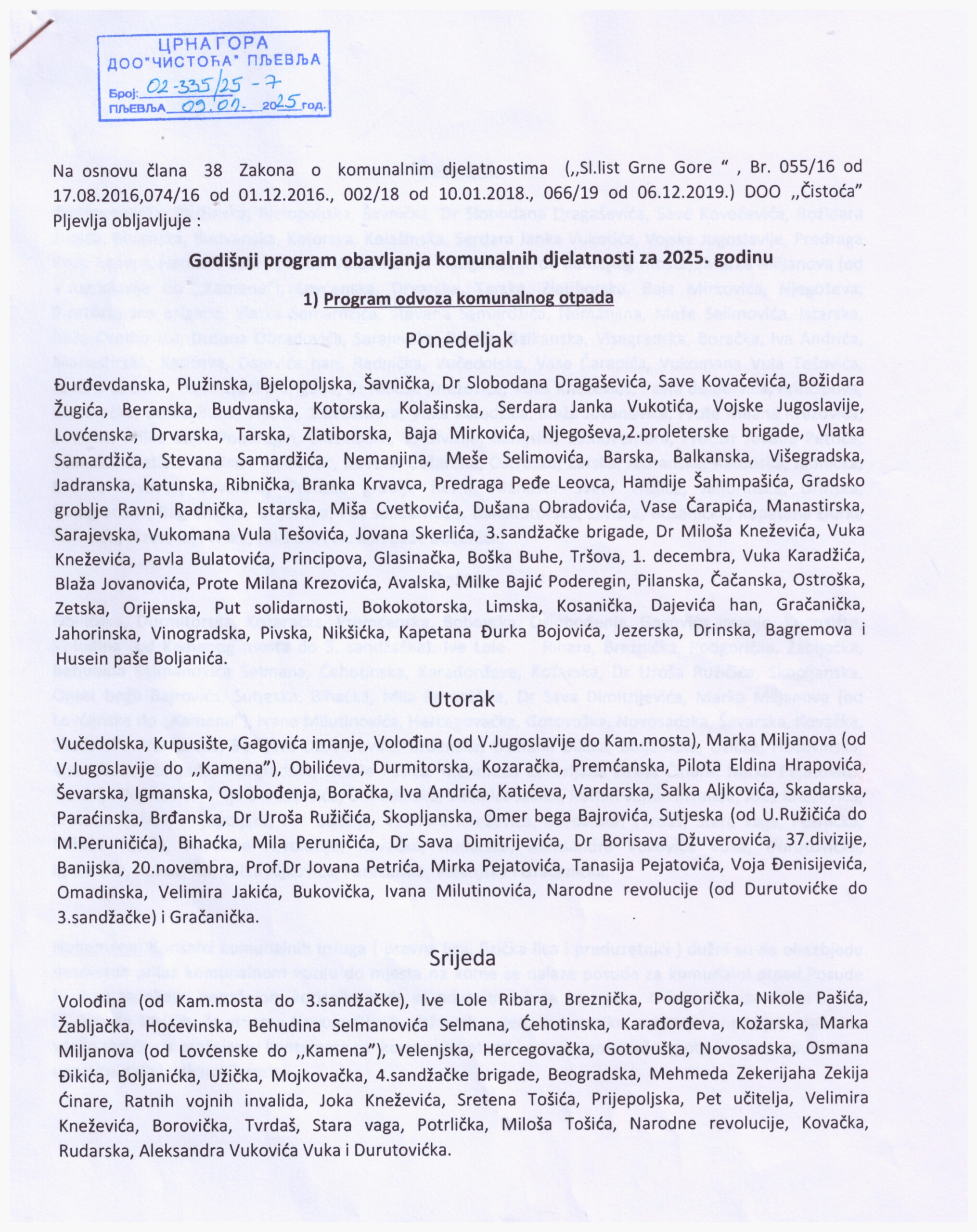 РЈ “за прикупљање и одвоз комуналног отпада”